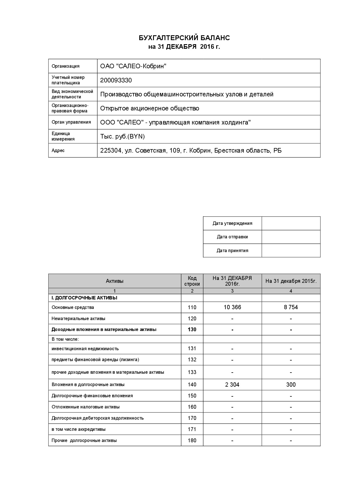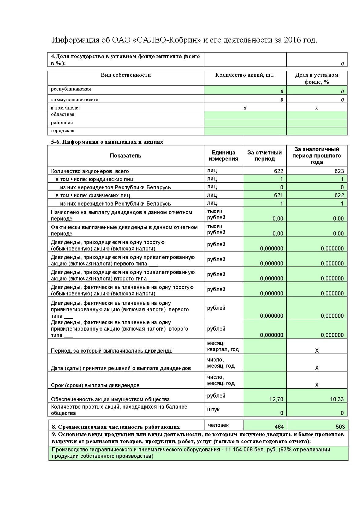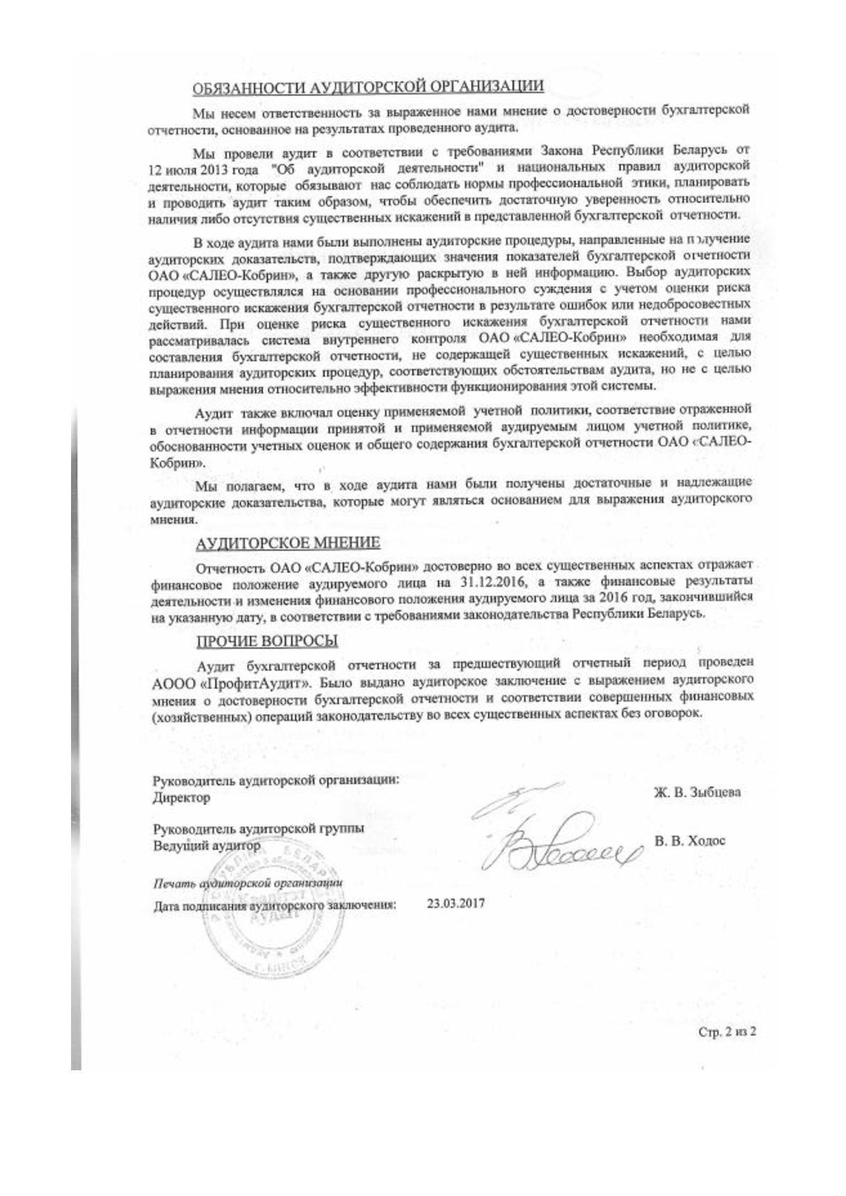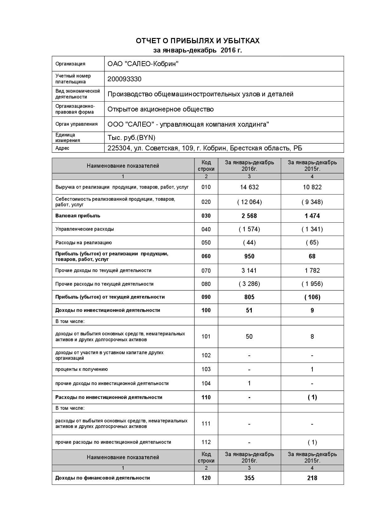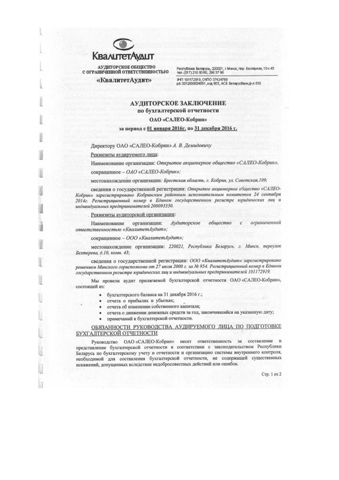 Годовой отчет эмитента ЦБ ОАО САЛЕО-Кобрин за 2016г.