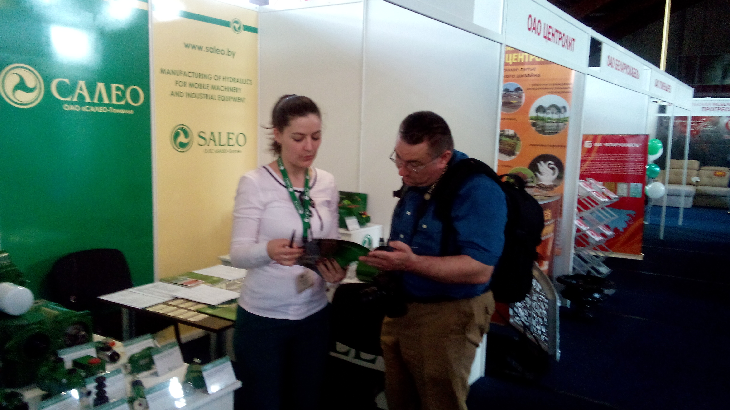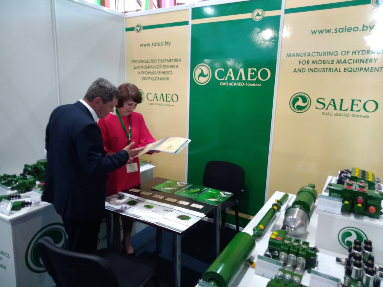 За все время работы выставки наблюдался повышенный интерес посетителей к фирменному стенду ОАО «САЛЕО-Гомель», гости мероприятия могли лично ознакомиться с гидравлической продукцией, производимой холдингом «САЛЕО»: гидрораспределителями, гидроблоками, гидроусилителями, гидроцилиндрами, трансмиссиями ГСТ45-46 и ГСТ112-112 (в составе гидронасос и гидромотор), краном блокировки, насосами-дозаторами, клапанами приоритетным и предохранительным, гидроцилиндрами одностороннего действия и многими другими изделиями для мобильной техники и промышленного оборудования.